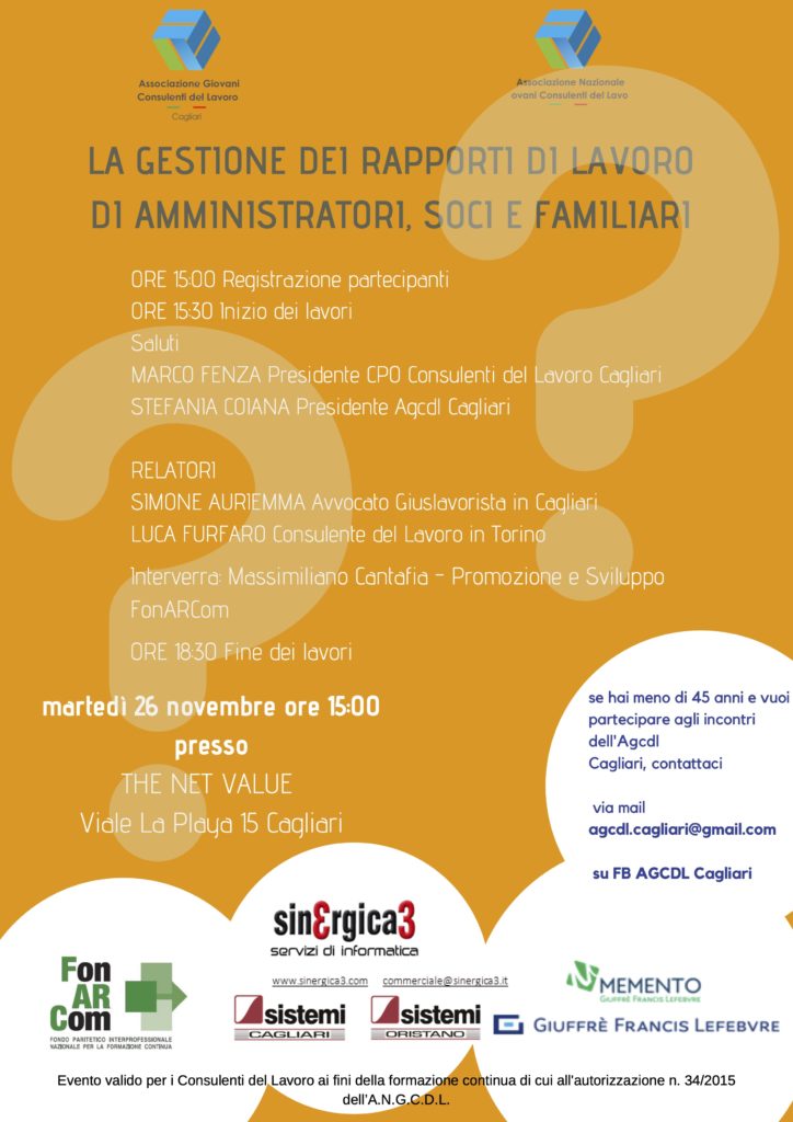 L’Associazione Giovani Consulenti del Lavoro Nazionale e di Cagliari hanno organizzato il Convegno sulla gestione dei rapporti di lavoro di amministratori, soci e familiari.